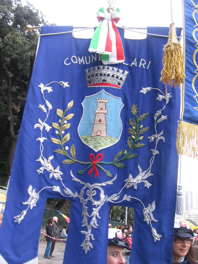• GENOVA. I GONFALONI DI ALCUNI DEI COMUNI ADERENTI AD AVVISO PUBBLICO, CHE HANNO SFILATO NEL CORTEO.