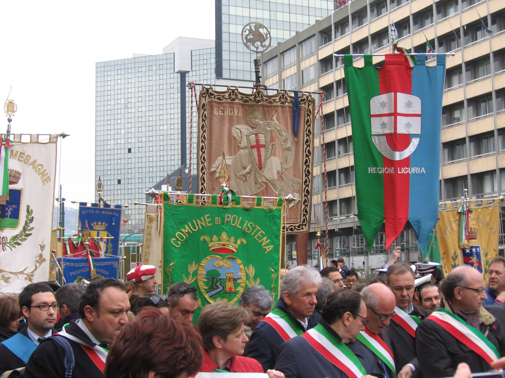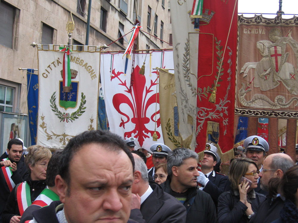08 Genova. I Gonfaloni di alcuni Comuni aderenti ad Avviso Pubblico che hanno sfilato nel corteo. |
