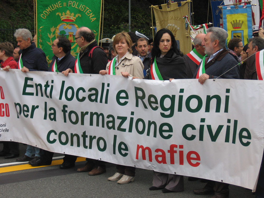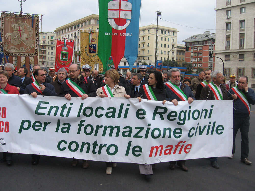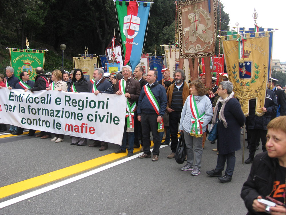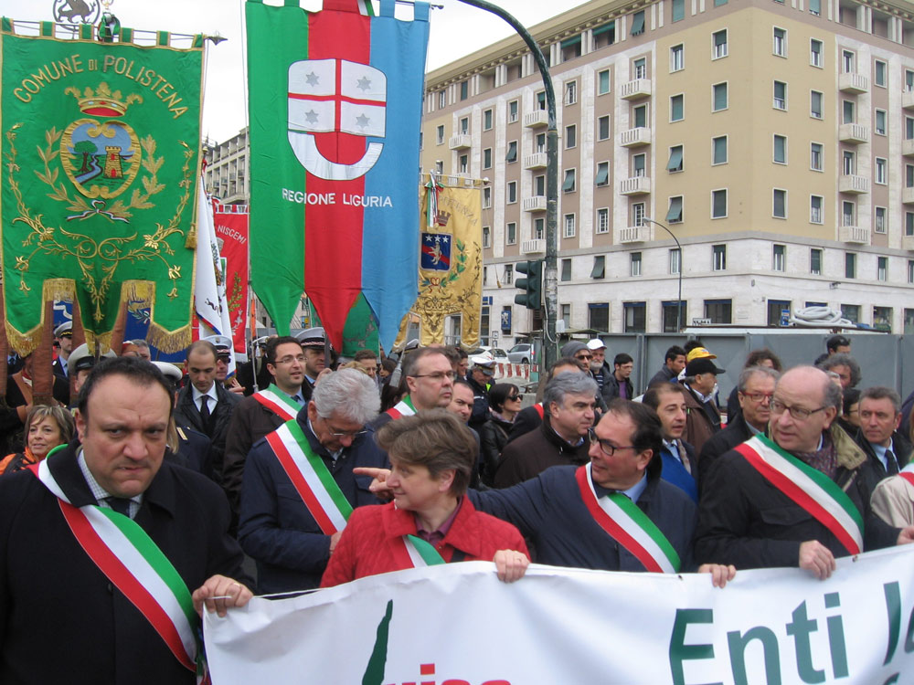 18 Genova. Il corteo di Avviso Pubblico, con i rappresentanti di alcuni Enti locali presenti alla manifestazione. |