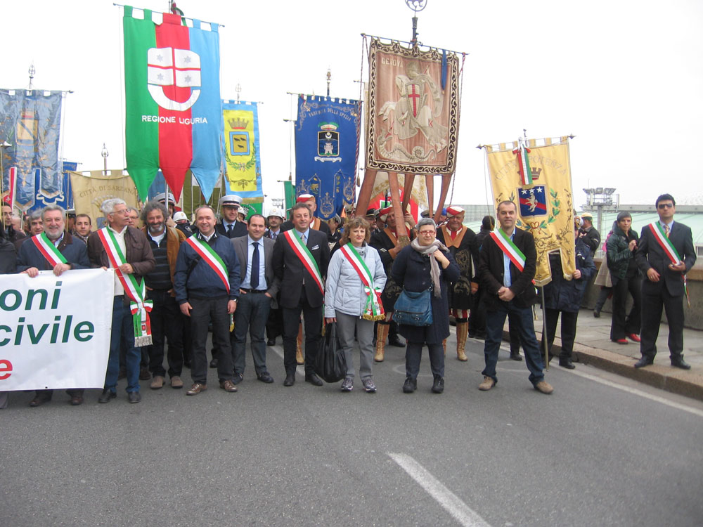 28 Genova. Il corteo di Avviso Pubblico, con i rappresentanti di alcuni Enti locali presenti alla manifestazione. |