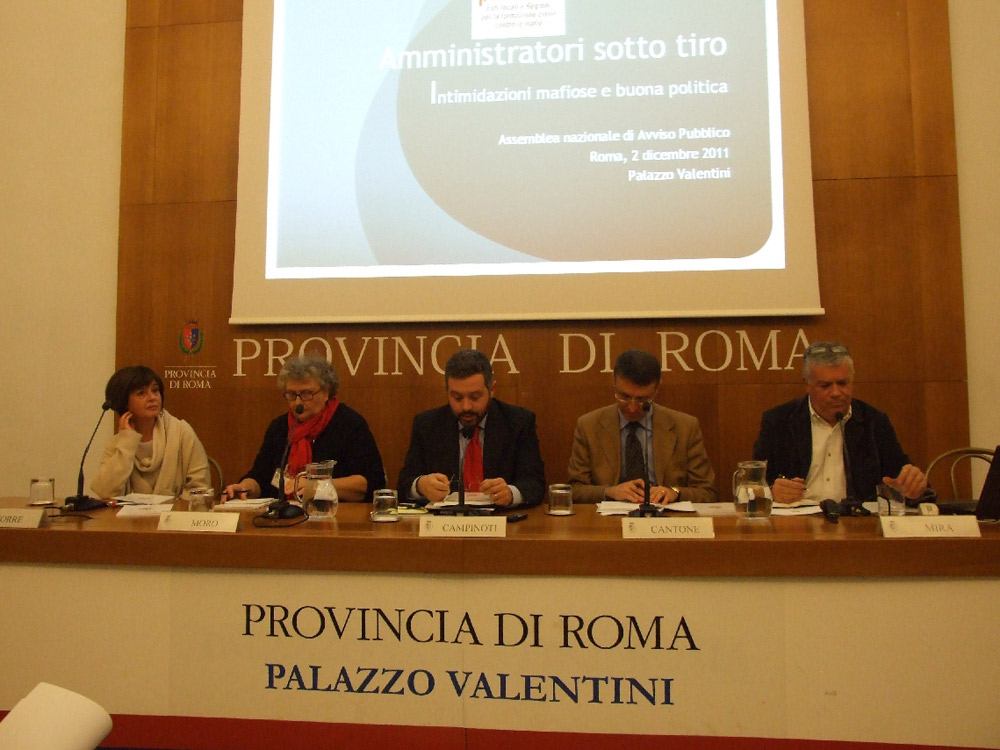 Foto della presentazione del Rapporto “Amministratori sotto tiro. Intimidazioni mafiose e buona politica” e dell'Assemblea nazionale di Avviso Pubblico. Roma, 2 dicembre 2011.