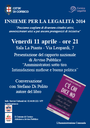I due appuntamenti fanno parte delle iniziative organizzate da Insieme per la legalità 2014, promossa dal gruppo “CorsicoLegalità” in collaborazione con Avviso Pubblico.