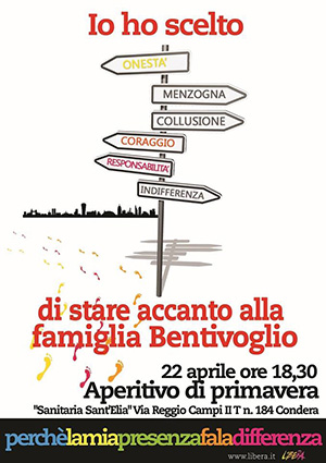 Nel pomeriggio di oggi, martedì 22 aprile, alle ore 18,30, a Reggio Calabria, presso la “Sanitaria Sant’Elia, in via Reggio Campi II tronco (Condera), n. 184, si terrà un’iniziativa, intitolata “Io ho scelto”, per stare accanto a Tiberio Bentivoglio e alla sua famiglia, a seguito dell’ennesimo vile atto intimidatorio subito. L’imprenditore Tiberio Bentivoglio è un testimone di giustizia che vive ormai da anni sotto scorta perchè non si è mai piegato alle continue richieste estorsive.