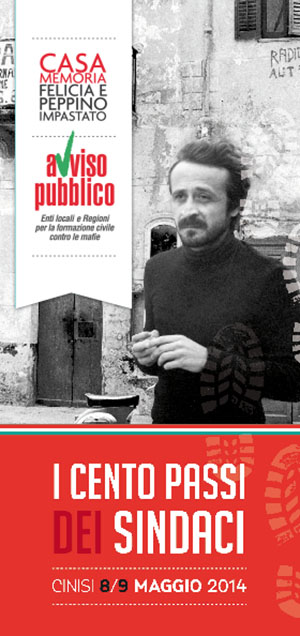 I primi cittadini e i Rappresentanti delle Istituzioni anche quest’anno, per la terza volta consecutiva, si ritroveranno a Cinisi (PA), giovedì 8 e venerdì 9 maggio, per la manifestazione “I Cento Passi dei Sindaci”, organizzata da Avviso Pubblico e da Casa Memoria Felicia e Peppino Impastato.